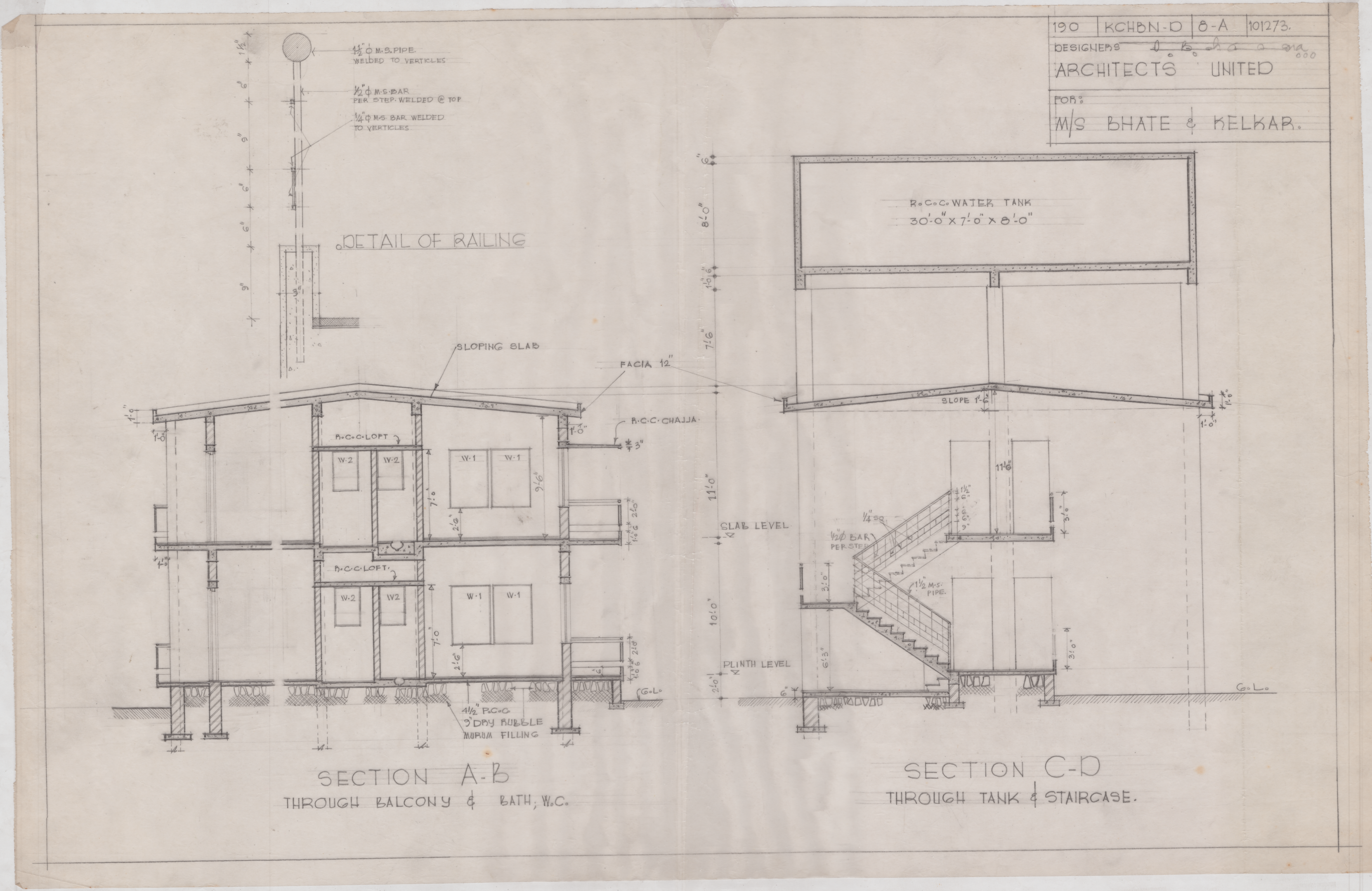 Section through staircase and R.C.C. water tank